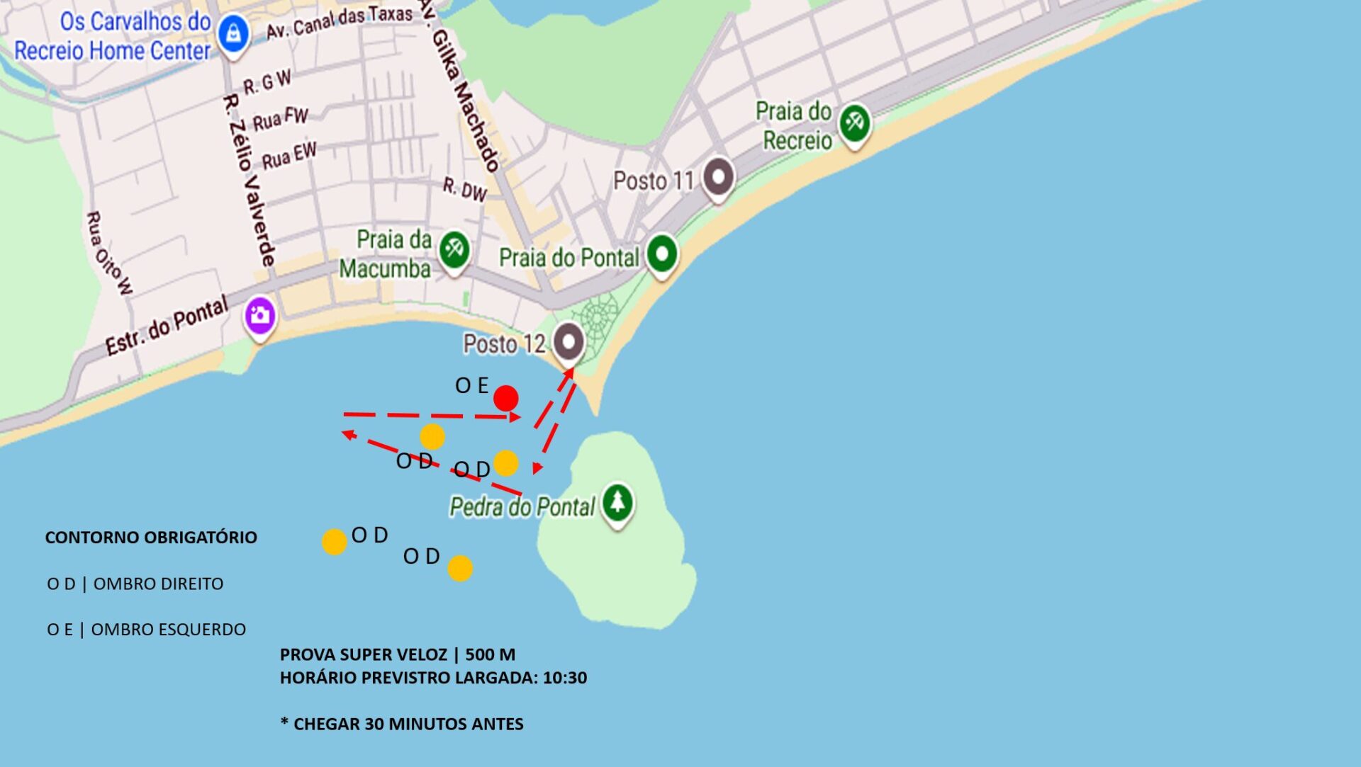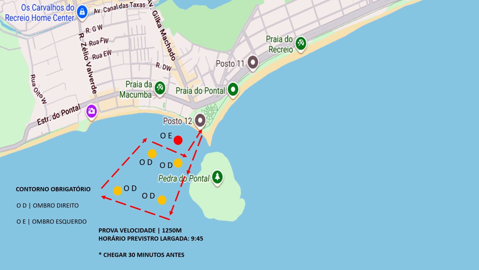 - O local da chegada da prova (Água ou Areia ), será definida no dia de acordo com o mar